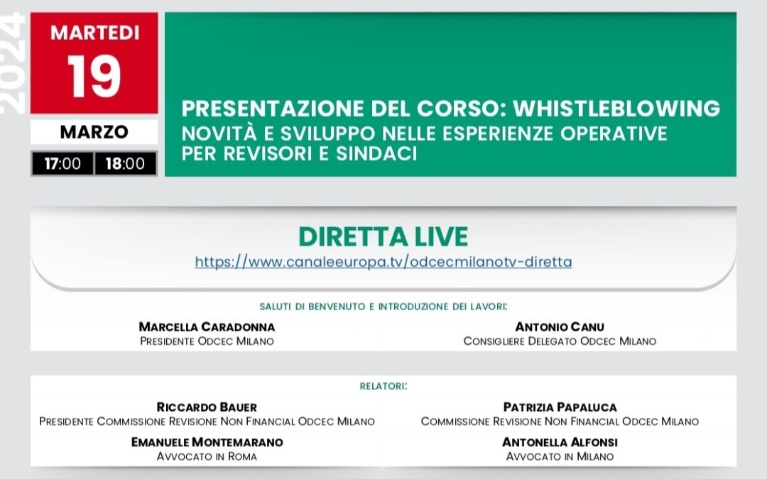 Oggi 19 marzo sui canali dell’ODCEC di Milano si è tenuta la diretta di presentazione del corso, con la partecipazione dell’Avv. Alfonsi.